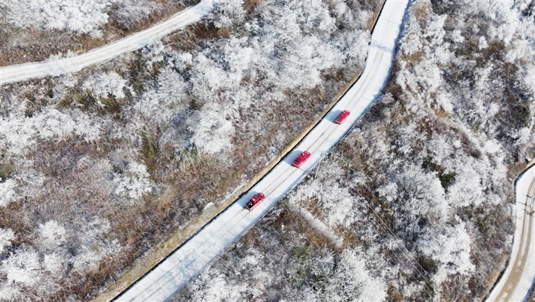 车辆防滑行进。记者 安峥 摄