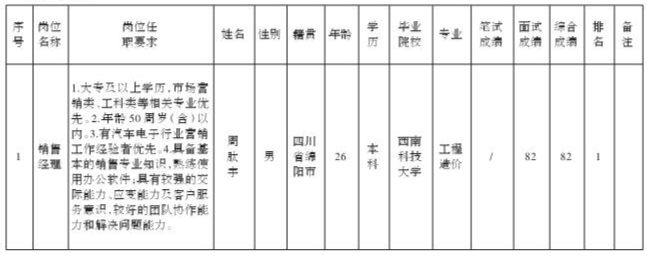 四川安和精密电子电器股份有限公司关于招聘销售经理测试成绩的公示