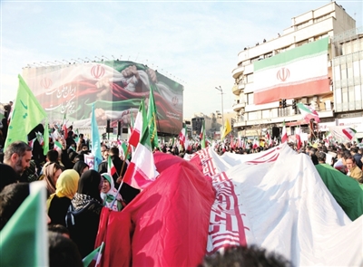 1月12日,在伊朗首都德黑兰,人们参加集会。新华社记者 沙达提 摄