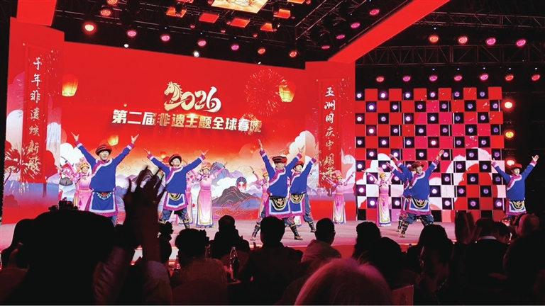 作为以“千年非遗焕新彩,五洲同庆中国年”为主题的全球文化盛典,本届非遗主题全球春晚搭建起跨越国界的文明对话桥梁,通过全球24时区接力直播,让中华非遗魅力辐射世界。受组委会邀请,北川民族艺术团携非遗节目《春到羌山万象新》登台展演。节目将羌族独特的歌舞艺术与民俗风情融为一体,以灵动的舞姿、悠扬的旋律,生动诠释了羌乡大地的生机与活力,让全球观众透过屏幕感受到中国少数民族文化的鲜活生命力。