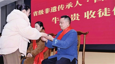 随后,年会的重头戏——非遗拜师仪式庄严登场。老一辈传承人倾囊相授,年轻弟子躬身敬茶。这一递一接之间,托付的不仅是手艺,更是绵延不绝的文化薪火。