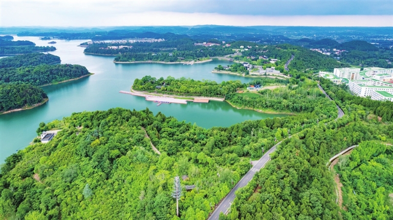在海棠社区,市民蒲女士每次带着女儿去鲜花小镇散步时,都能惊喜地发现,春天亲手栽种的小树苗又长高了一截;在徐家桥社区,曾经的“颜值短板”变身生态景观,居民推窗见绿、出门入园。仙海新建的多彩生态景观带宛如彩色丝带缠绕大地,宽约4.5米的环湖亲水绿道蜿蜒伸展,串联起体育公园、神仙树、亲水湾沙滩乐园等景点,一侧是波光粼粼的湖水,一侧是郁郁葱葱的山林,让市民和游客在闲庭漫步中,沉浸式感受“人在画中游”的惬意与悠然。