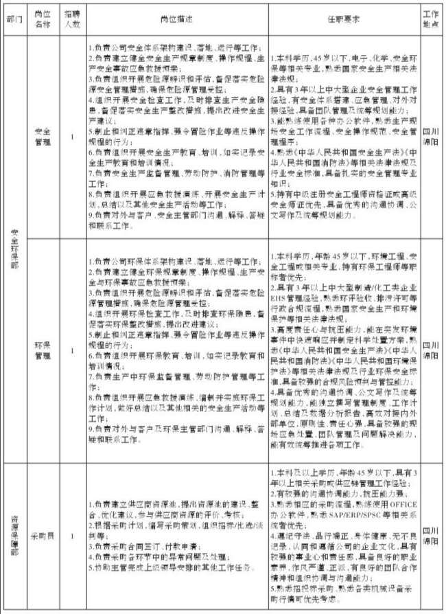 因公司经营发展需要,现面向社会诚聘安全管理等岗位人员,具体岗位招聘信息公告如下: