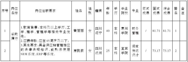 四川九州电子科技股份有限公司关于招聘采购履行岗测试成绩的公示