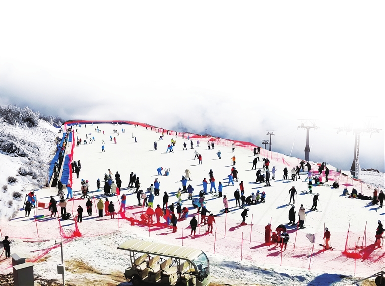 如果说王朗代表了平武冰雪的静谧与深度,那么虎牙与药丛山的滑雪场则点燃了速度与激情。1月21日,总投资约1.5亿元的虎牙滑雪场开始试运营,标志着平武在规模化冰雪运动项目上实现突破。该雪场地处岷山山脉,海拔约2400米,凭借独特地理气候条件,拥有长达四个月的优质冰雪期,一期工程建成雪道总面积约7万平方米,规划了初、中、高级不同坡度雪道及专属家庭娱雪区,配备专业滑雪装备与教学服务,可同时接待大量游客,填补了当地大型冬季运动项目的空白。