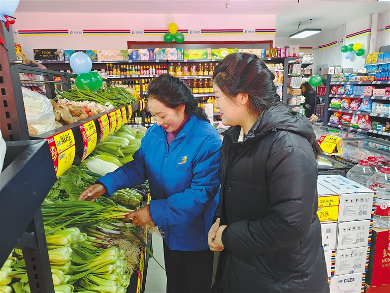 图为社区群众在家门口的超市购买蔬菜。本报记者 裴聪 摄