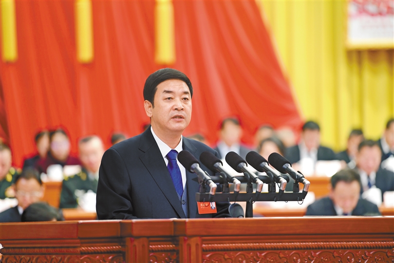 严金海在报告中指出,今天的西藏正处在迈向高质量发展的战略机遇期,政治优势、政策优势、资源优势、人口优势、后发优势等叠加释放,全区上下拼搏实干的精气神持续提振,发展的条件更加有利、前景无限广阔。我们必须把坚持高质量发展作为新时代的硬道理,聚焦“四件大事”聚力“四个创建”,用好“八对抓手”,打好主动仗、下好先手棋,统筹当前长远,超前谋划重大布局和重大平台;聚焦瓶颈制约,坚定推进重大政策和重大改革;抢抓战略机遇,加紧实施重大工程和重大项目。