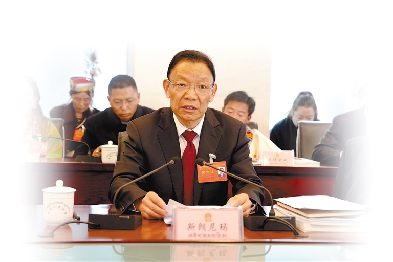 自治区人大代表、自治区副主席、日喀则市委书记斯朗尼玛。 本报记者 汪纯 摄