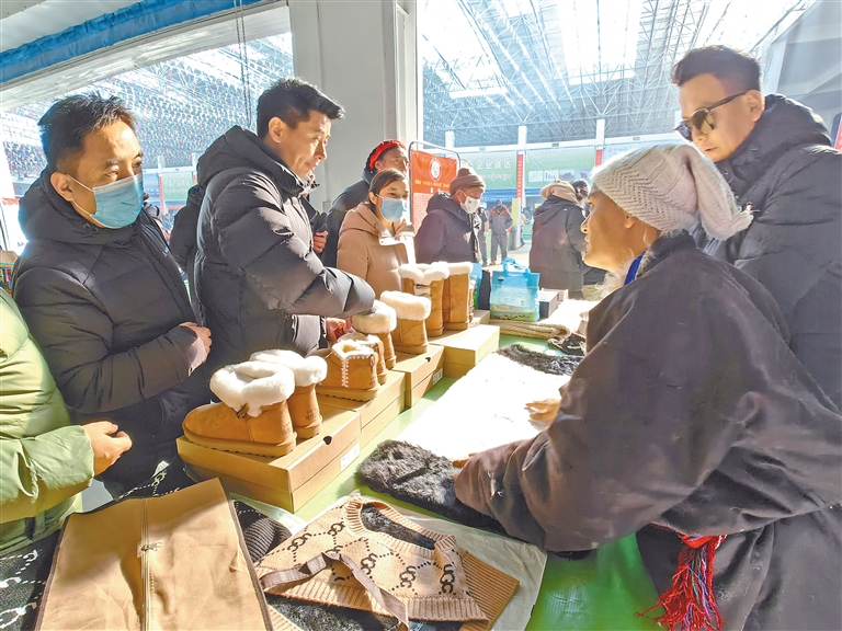 展位前,不少市民前来光顾,纷纷购买嘎措羊皮雪地靴。市民拉姆正在仔细挑选,她说:“之前是朋友推荐,在网上购买。穿着轻便暖和,时尚百搭,今天来再选购一双,换着穿。”