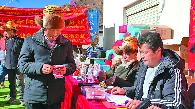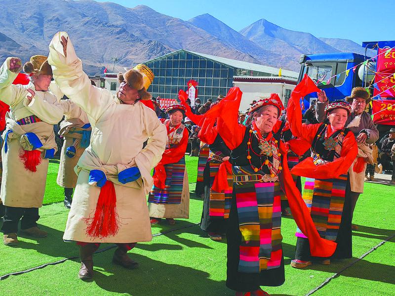 喜领产业分红款、分享发展经验、观看精彩表演……在日喀则农事新年里,日喀则市南木林县多角乡色雄村350多名群众欢聚一堂,共庆新年、共享幸福。
