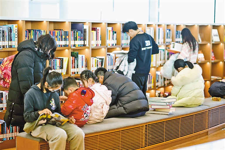 周末,不少市民来到新开馆不久的北京城市图书馆,在书香中度过假日。 图为1月14日,市民在北京城市图书馆里阅读。 新华社记者 彭子洋 摄