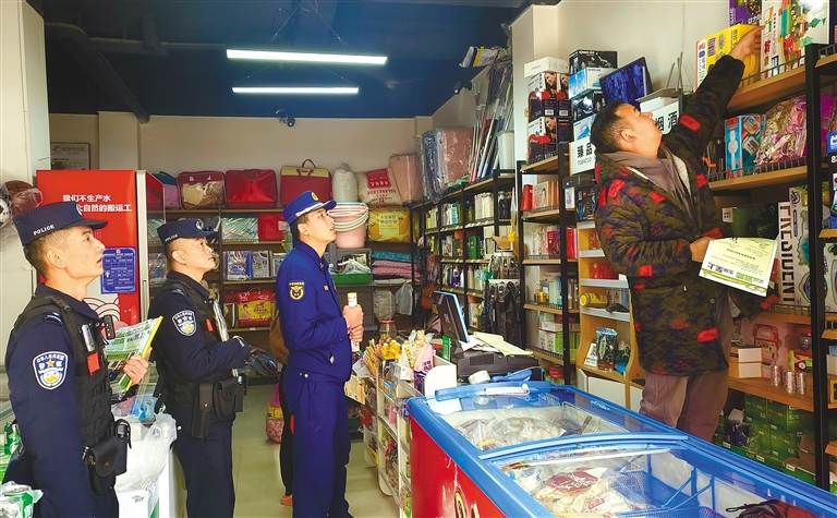 图为检查组在商店排查火灾隐患。 本报记者 王敏 本报通讯员 李宗昌 摄