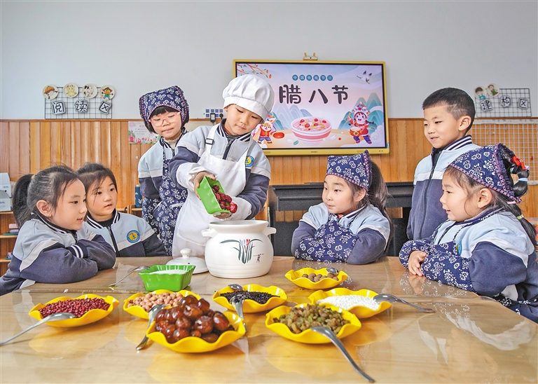 腊八节将至,各地学校、幼儿园开展“迎腊八”主题活动,孩子们在老师的指导下了解腊八习俗,感受传统文化魅力。