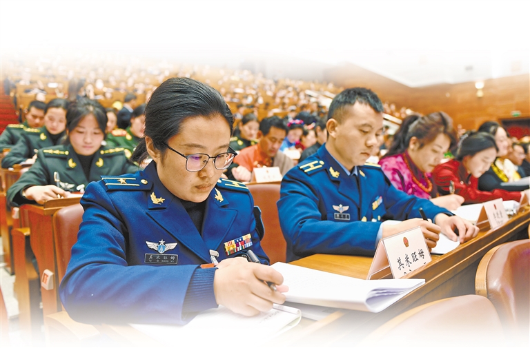人大代表认真聆听工作报告。本报记者 旦增兰泽 摄