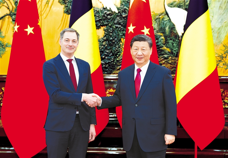 习近平指出,中方高度重视中比关系发展。中比建交53年来,各领域合作成果丰硕,惠及两国人民。中比都是经济全球化的受益者,在抵制保护主义、维护自由贸易方面有共同利益。中方赞赏首相先生多次公开发声反对“脱钩断链”,欢迎比利时企业来华投资兴业,愿为他们提供良好营商环境,也希望比方为中国企业提供公正、透明、非歧视的营商环境。双方可以结合各自优势,扩大在交通物流、生物制药等传统领域合作,探讨打造绿色发展、数字经济等合作新增长点。双方要鼓励两国政府部门、立法机构、地方省市加强交往对话,扩大双向旅游和留学生交流,互办大型文化活动,开展大熊猫保护研究,不断增进相互了解和民间友好,为中比关系注入新动力、拓展新前景。中方愿同比方加强在联合国等多边框架内沟通,就应对气候变化、保护生物多样性等议题开展合作。