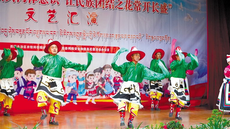 本次演出有舞蹈《党的恩惠永不忘》《朗玛堆谐》、双重唱《红太阳照边疆》、诗歌朗诵《雪域农科人》等十余个节目。其中,区党委网信办互联网违法和不良信息举报中心带来的情景剧《什么?村里来了人贩子?》深受欢迎。现场,演员们演出热情高涨、状态饱满,观众掌声、喝彩声连绵不绝,整场晚会气氛十分热烈。