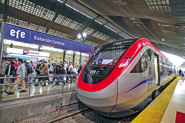 中国企业中车四方股份公司为智利研制的电力内燃双动力动车组1月19日在智利投入载客运营,服务智利国家铁路阿拉梅达至库里科区间。该动车组最高运行时速160公里,是当前南美洲最快的轨道列车。