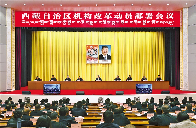 1月25日,自治区机构改革动员部署会议在拉萨召开。自治区党委书记王君正出席并讲话。这是会议现场。本报记者 李洲 摄