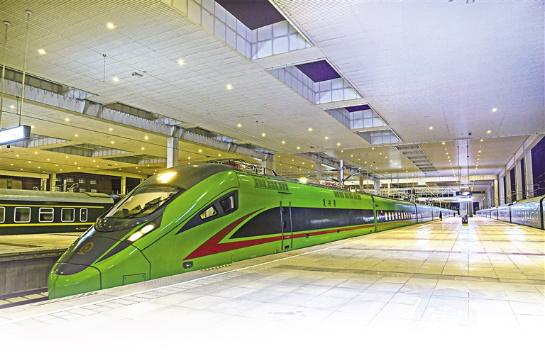 图1:春运首日,“复兴号”缓缓驶出拉萨火车站。