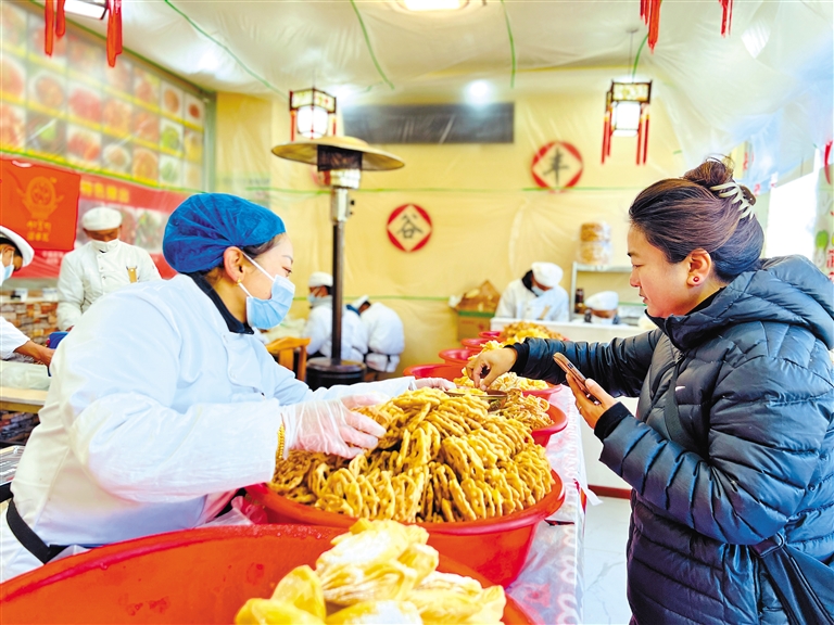 随着春节和藏历新年的临近,拉萨年货市场日渐火爆,街头巷尾飘着阵阵“卡赛”香味。“卡赛”是藏历新年必备年货,记者随机走进一家“卡赛”店,员工们正忙于炸制“卡赛”。市民扎桑说,在家制作“卡赛”费时费力,自己每年都会在市场上购买“卡赛”。
