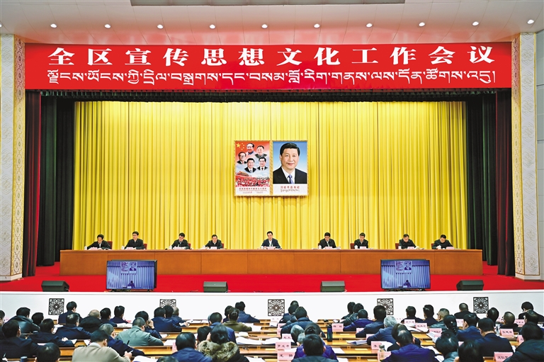 王君正指出,习近平总书记高度重视宣传思想文化工作,坚持把马克思主义基本原理同中国具体实际相结合、同中华优秀传统文化相结合,鲜明提出了一系列具有原创性、独创性、开创性的重大理论观点,深刻回答了新时代宣传思想文化建设一系列重大理论和实践问题,形成了习近平文化思想,为我们做好新时代宣传思想文化工作提供了强大思想武器和科学行动指南。近年来,全区宣传思想文化系统增强大局意识,自觉肩负起职责使命,推动理论武装走深走实、主流思想舆论巩固壮大、民族团结教育不断深化、精神文明建设成效显著、文化事业和文化产业加快发展、意识形态领域总体平稳,为西藏长治久安和高质量发展营造了良好的社会环境。