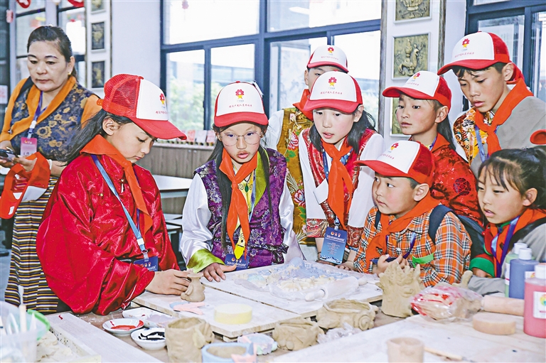 上图:参加冬令营活动的少先队员正在体验手工制作。 本报记者 谢筱纯 王珊 摄