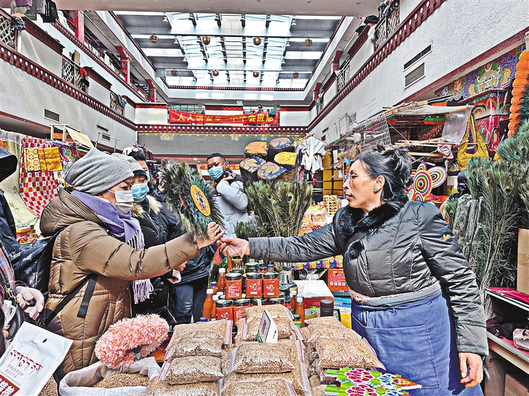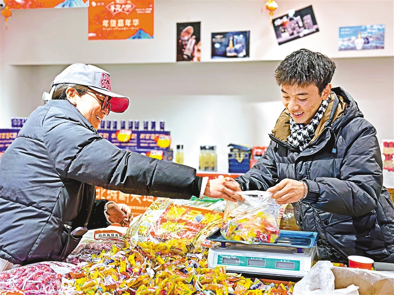 随着春节、藏历新年的临近,浓浓的年味在市民购置年货中弥漫开来。