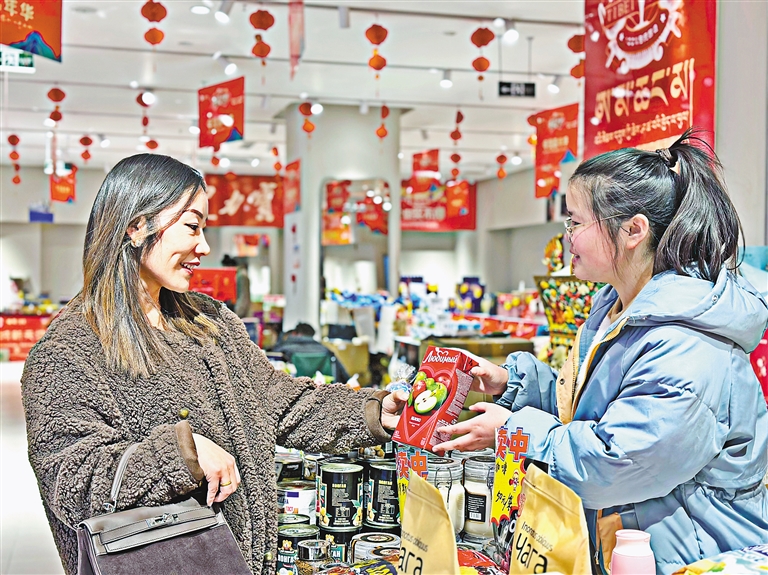除了传统年货市场的八廓商城,拉萨市各大商场、超市也提前备好了年货。为期9天的“洋”年货展销,更是让共建“一带一路”倡议呈现在民间交往交流交融中。