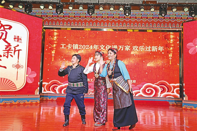 近日,墨竹工卡县工卡镇举行“文化进万家 欢乐过新年”联欢晚会。活动包括学生演讲比赛、文艺演出和镇社工站年前送礼包三项内容。活动丰富了该镇群众的精神文化生活,同时展现了工卡镇广大群众昂扬向上、共建和谐、共创辉煌的精神面貌。