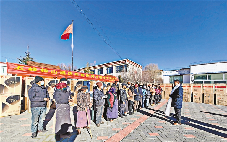 春节、藏历新年来临之际,曲水县才纳乡本地企业家旦巴贡布,携价值15万余元的慰问品,慰问该乡35户困难群众。慰问活动中,旦巴贡布向每户赠送冰箱和洗衣机,并鼓励困难群众树立信心、自立自强,让他们真切感受到党和政府以及社会对他们的关心关爱。