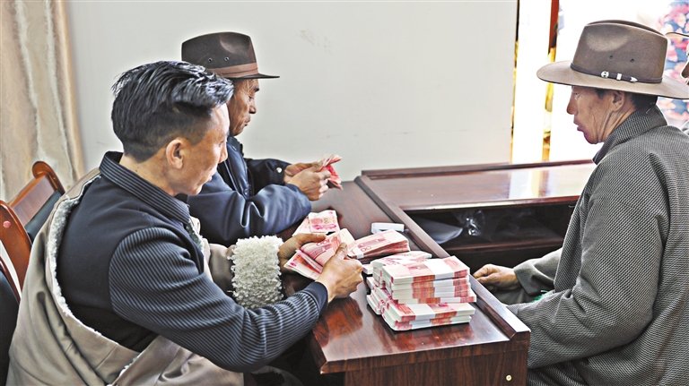 图为分红现场。本报通讯员 普珍 阿珍 益西平措 摄