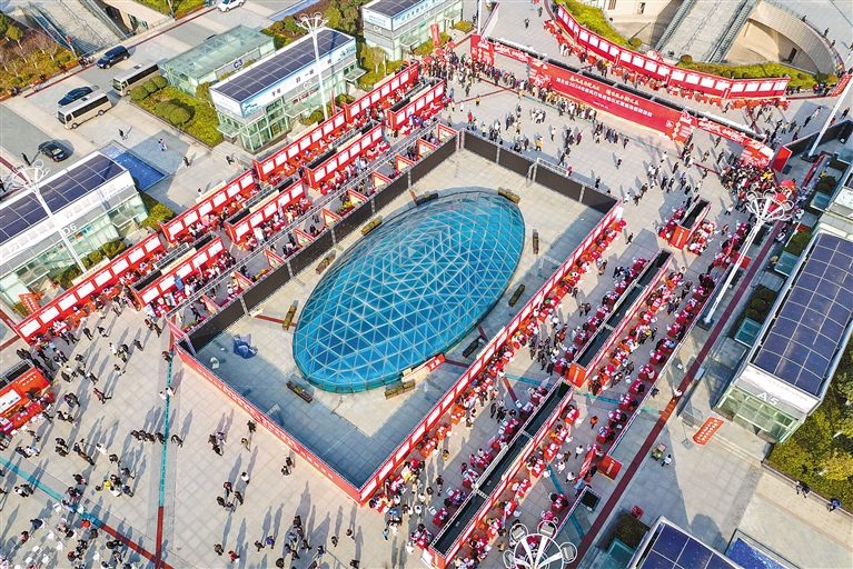 图为1月27日拍摄的招聘活动现场(无人机照片)。新华社记者 伍志尊 摄