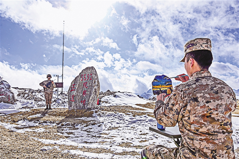 当守护成为一种责任,再高的山都在脚下。过去的一年,李于靖见过太多这样的人、这样的事。也是在被这些人、这些事感动后,他逐渐读懂了老兵们在戍边石作画时的心情:“把最热烈的情感,镌刻在最冰冷的石头上,他们想让山与石见证自己的青春担当。”