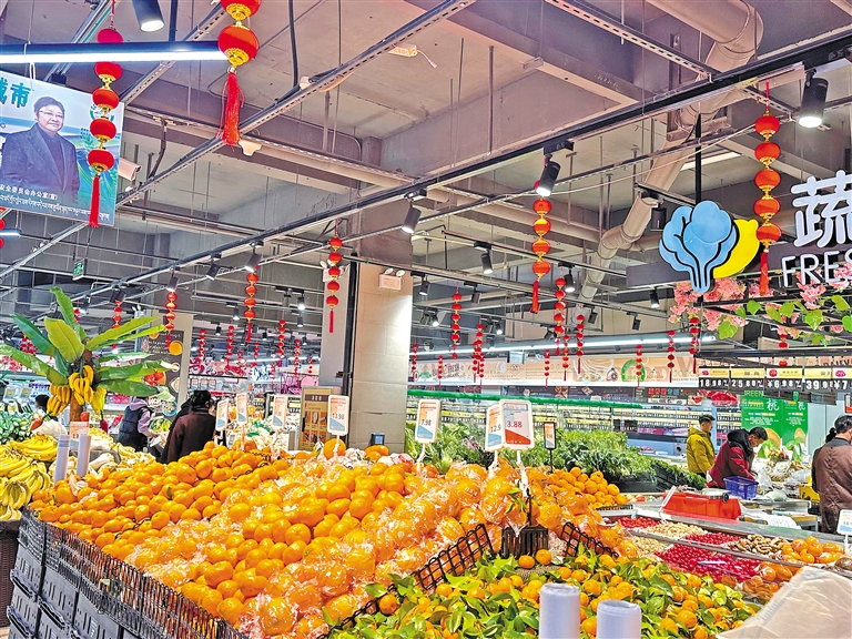 在位于拉萨市城关区万达广场的永辉超市,许多市民在选购心仪的商品,购物推车里装满了各种各样的货品。超市负责人潘荣国说:“为更好满足消费者的节假日需求,近期,我们超市积极为两大节日备货,备货金额达2000万元,其中,生鲜备货在800万元以上。”