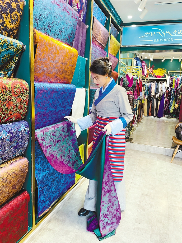 新年前夕,切玛盒摊位的生意特别好。摊贩老板次仁多吉在送走一拨客人后,热情地向记者介绍了藏历新年的习俗:“这是我们用来装青稞粒和糌粑的容器,叫切玛盒。当有客人来家里做客,主人家便会捧起切玛盒向客人敬切玛,以表示对客人的欢迎与祝福。”