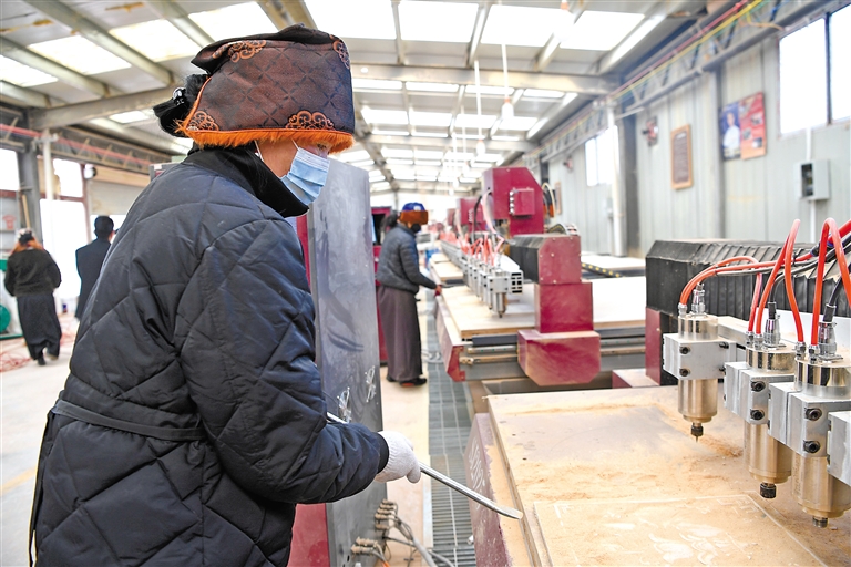 图为昌都市丁青县岗翁布文创园木雕匠人在工作。 本报记者 王敏 摄