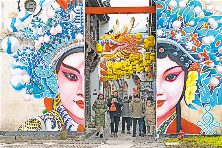 浙江:2月5日,游客在浙江省金华市金东区岭下镇坡阳古街游览。新华社发(胡肖飞 摄)