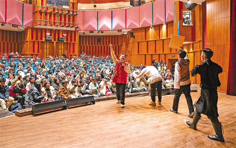 图为2月4日,一场藏语“秀哒”脱口秀在拉萨上演,现场气氛热烈。 新华社记者 丁增尼达 摄