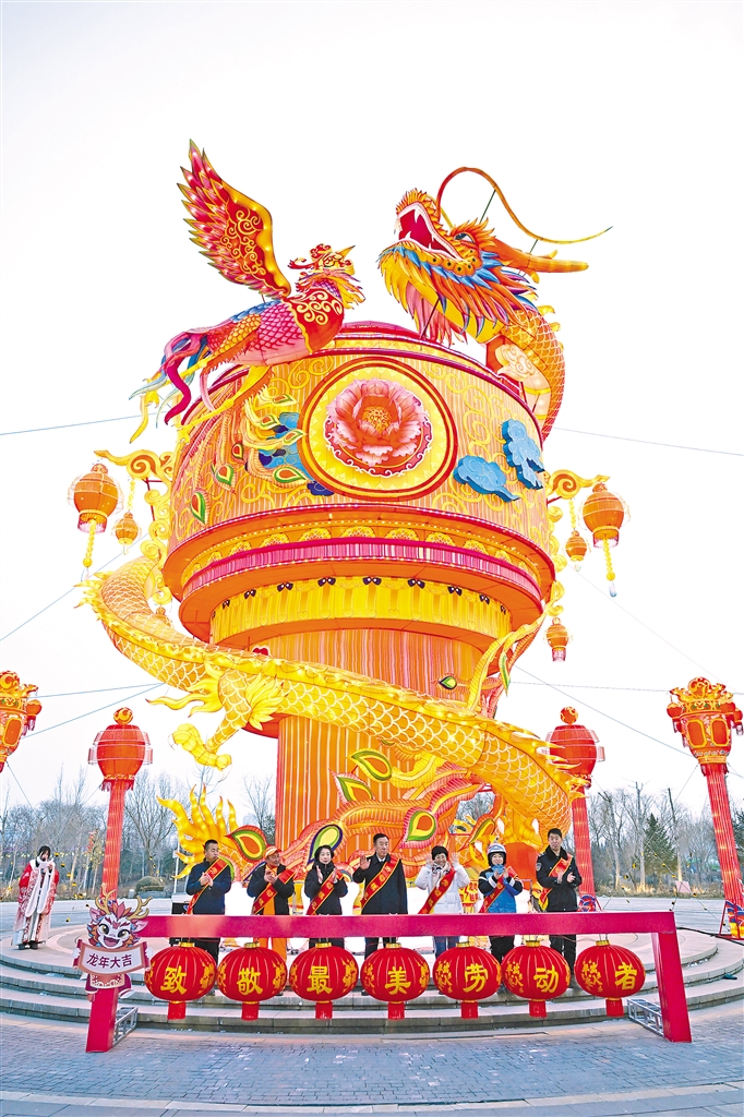 图③:2月7日,宁夏银川市举行“百名劳模赏花灯、迎新春”活动,劳动模范代表在银川市金凤区阅海湾水上公园点亮龙年花灯。新华社记者 王鹏 摄