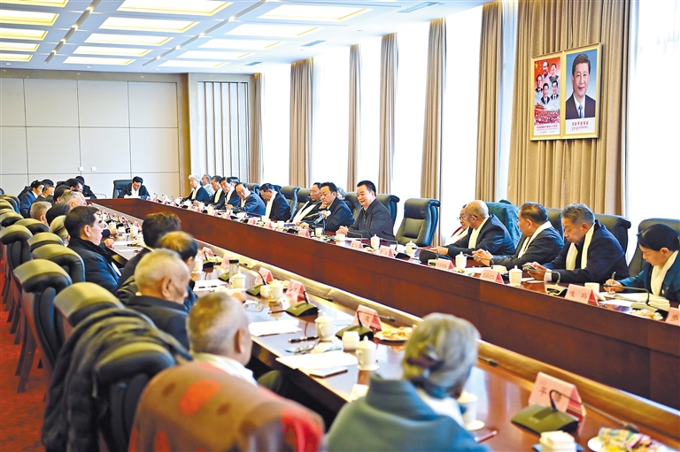 春节、藏历新年前夕,自治区党委书记王君正分别在成都、拉萨看望慰问老领导老同志,并与离退休老干部座谈。这是座谈会现场。本报记者 旦增西旦 摄
