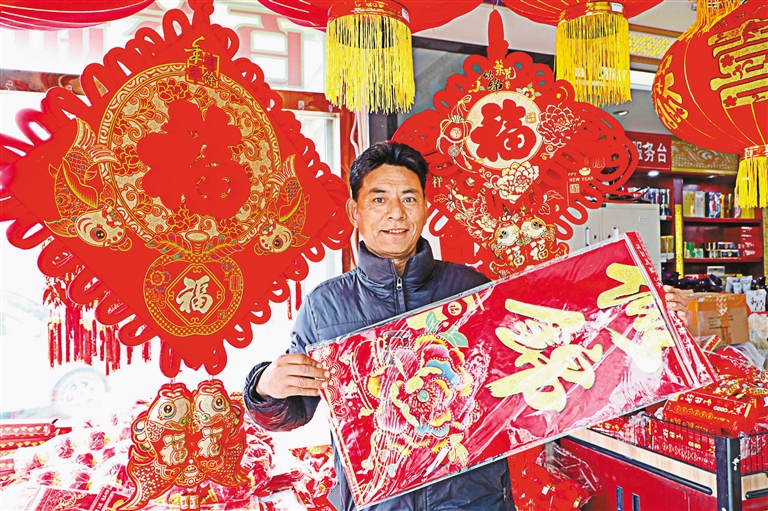 图为群众展示选购的春联。本报记者 永青 达珍 洛桑旦增 摄