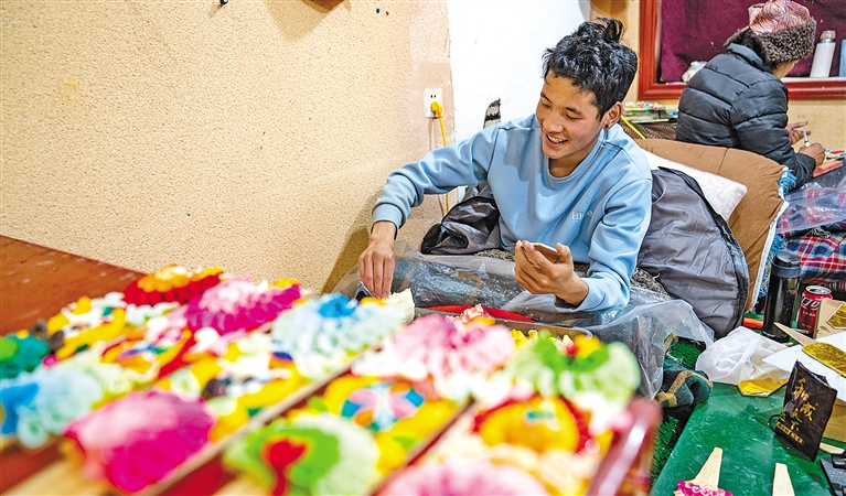 上图:手工艺人在制作酥油花。新华社记者 丁增尼达 摄