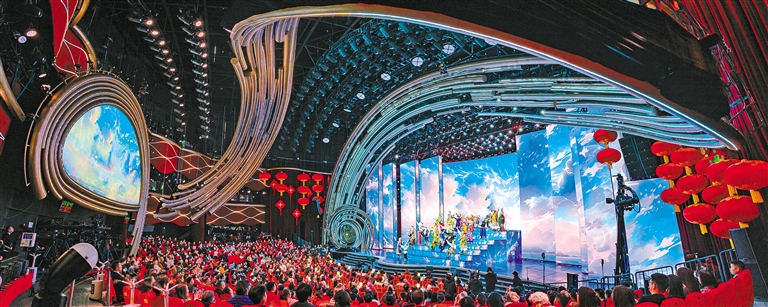 图为来自昌都市康巴文化艺术团的演员们登上中央广播电视总台2024年春节联欢晚会的舞台,在节目《永恒的诗篇》中热情放歌。向巴曲增 摄