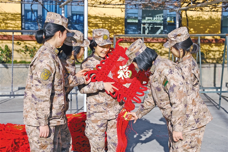 图为昌都军分区某团官兵写春联、挂灯笼、贴福字,军营洋溢着浓浓年味。本报通讯员 任从光 摄