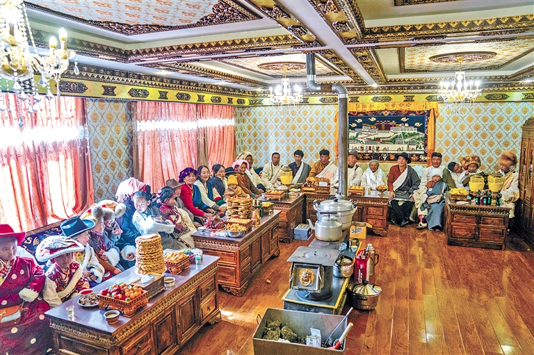 图为2月10日,拉萨市当雄县公塘乡甲根村斯曲旺姆一家人欢度春节、藏历新年。新华社记者 孙非 摄