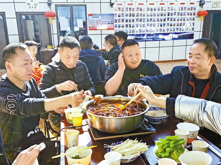图⑤:林芝火车站工作人员在食堂吃年夜饭。