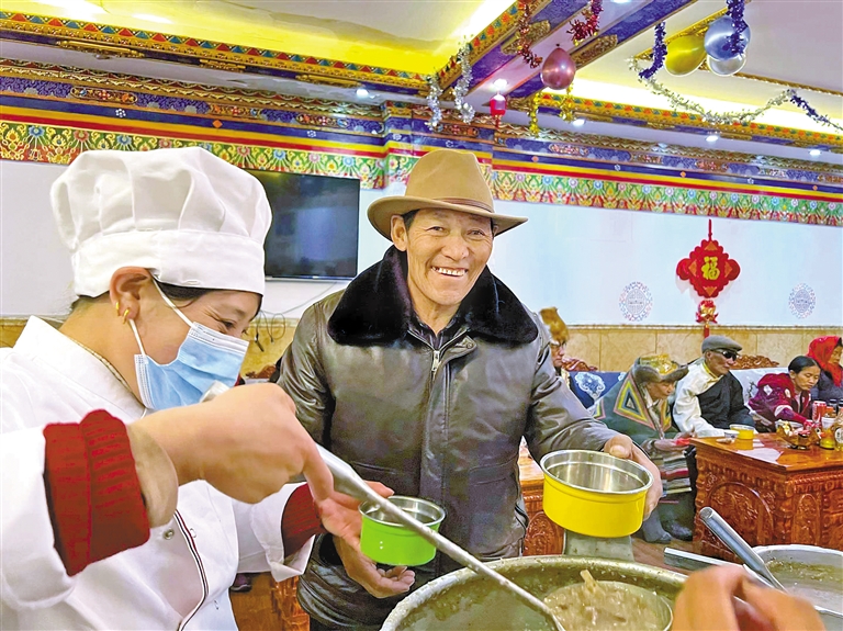 “每年这个时候,我们都会陪老人孩子们喝‘古突’、吃年夜饭,让老人孩子们真切感受到党和政府的关怀,感受到家庭般的温暖和浓厚的年味。”阿里地区双集中供养中心工作人员罗增告诉记者。