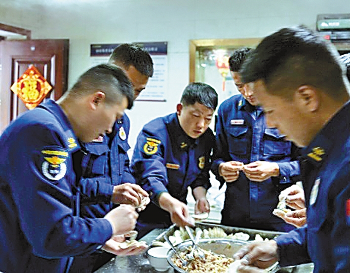 布宫消防救援大队队员包饺子