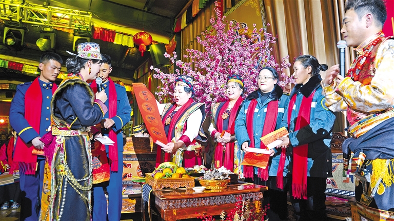 近日,巴宜区2024年春节、藏历新年“村晚”在林芝镇曲古村上演。“村晚”以“花开先行年 新农新风貌”为主题,通过“回家”“古突”“祝福”三个篇章,生动展现了巴宜区各族群众幸福生活。