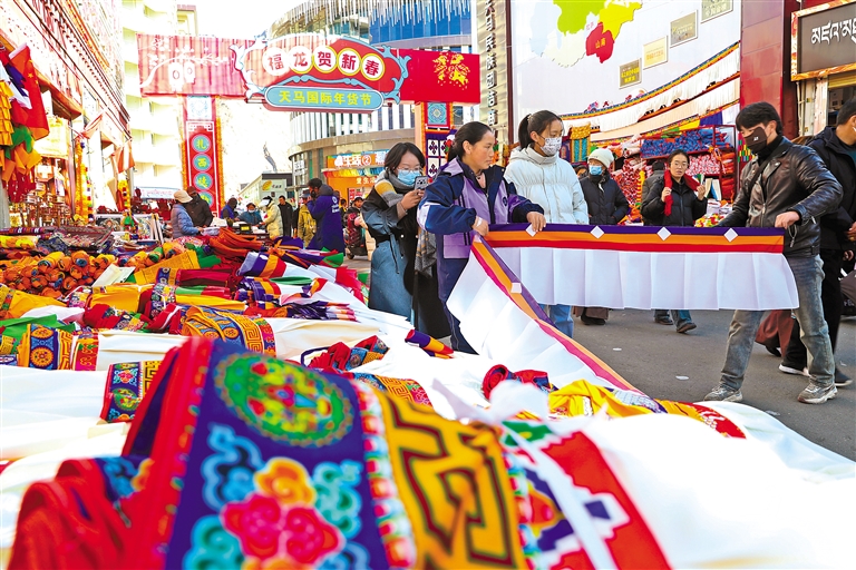 春节、藏历新年临近,年货市场开始热闹起来。山南市泽当镇市民纷纷走进大型商超和农贸市场选购节日货品,商户备足货源,推出让利促销活动,满足各族群众消费需求,年货市场呈现出购销两旺的良好态势。